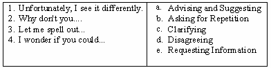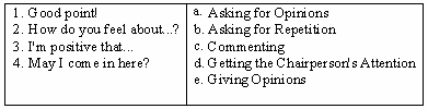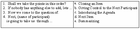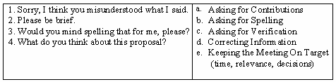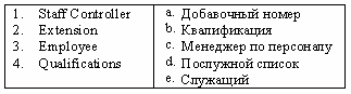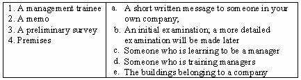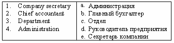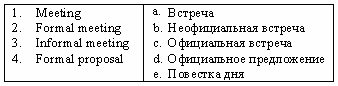 Список вопросов базы знанийАнглийский язык. Практикум по культуре речевого общенияВопрос id:1256100 Match the equivalents. ![]() ?) 1-c, 2-a, 3-d, 4-e ?) 1-b, 2-d, 3-e, 4-c ?) 1-e, 2-b, 3-c, 4-a ?) 1-d, 2-c, 3-a, 4-b Вопрос id:1256101 Match the equivalents. ![]() ?) 1-a, 2-e, 3-c, 4-b ?) 1-e, 2-d, 3-b, 4-a ?) 1-e, 2-d, 3-c, 4-a ?) 1-a, 2-d, 3-c, 4-e Вопрос id:1256102 Match the equivalents. ![]() ?) 1-d, 2-e, 3-b, 4-a ?) 1-a, 2-c, 3-b, 4-d ?) 1-d, 2-b, 3-a, 4-c ?) 1-a, 2-b, 3-c, 4-d Вопрос id:1256103 Match the equivalents. ![]() ?) 1-c, 2-e, 3-a, 4-d ?) 1-a, 2-e, 3-b, 4-c ?) 1-d, 2-a, 3-b, 4-c ?) 1-d, 2-e, 3-b, 4-a Вопрос id:1256104 Match the equivalents. ![]() ?) 1-c, 2-e, 3-b, 4-a ?) 1-a, 2-c, 3-b, 4-e ?) 1-b, 2-c, 3-a, 4-d ?) 1-a, 2-e, 3-c, 4-b Вопрос id:1256105 Match the equivalents. ![]() ?) 1-b, 2-c, 3-e, 4-d ?) 1-e, 2-d, 3-a, 4-c ?) 1-b, 2-a, 3-e, 4-d ?) 1-c, 2-a, 3-e, 4-b Вопрос id:1256106 Match the equivalents. ![]() ?) 1-b, 2-a, 3-e, 4-d ?) 1-e, 2-d, 3-b, 4-c ?) 1-d, 2-a, 3-e, 4-b ?) 1-c, 2-b, 3-a, 4-d Вопрос id:1256107 Match the equivalents. ![]() ?) 1-a, 2-d, 3-c, 4-b ?) 1-c, 2-b, 3-e, 4-a ?) 1-b, 2-e, 3-a, 4-d ?) 1-d, 2-e, 3-b, 4-a Вопрос id:1256108 Match the equivalents. ![]() ?) 1-e, 2-b, 3-a, 4-d ?) 1-a, 2-d, 3-e, 4-b ?) 1-b, 2-c, 3-a, 4-d ?) 1-e, 2-c, 3-a, 4-b Вопрос id:1256109 Match the equivalents. ![]() ?) 1-d, 2-e, 3-b, 4-a ?) 1-a, 2-e, 3-b, 4-d ?) 1-c, 2-a, 3-b, 4-d ?) 1-d. 2-c, 3-a, 4-b Вопрос id:1256110 Match the terms with similar meanings. ![]() ?) 1-a, 2-e, 3-d, 4-b ?) 1-e, 2-d, 3-a, 4-b ?) 1-b, 2-e, 3-a, 4-c ?) 1-c, 2-b, 3-e, 4-d Вопрос id:1256111 Match the terms with similar meanings. ![]() ?) 1-d, 2-e, 3-b, 4-a ?) 1-e, 2-a, 3-b, 4-c ?) 1-a, 2-c, 3-b, 4-d ?) 1-c, 2-e, 3-d, 4-b Вопрос id:1256112 Match the word combination with the right phase of the meeting: ![]() ?) 1-d, 2-c, 3-e, 4-b ?) 1-a, 2-c, 3-d, 4-e ?) 1-e, 2-d, 3-b, 4-a ?) 1-b, 2-d, 3-e, 4-a Вопрос id:1256113 Match the word combination with the right phase of the meeting: ![]() ?) 1-b, 2-a, 3-d, 4-c ?) 1-d, 2-e, 3-a, 4-b ?) 1-e, 2-c, 3-a, 4-d ?) 1-e, 2-b, 3-a, 4-d Вопрос id:1256114 Match the word combination with the right phase of the meeting: ![]() ?) 1-e, 2-d, 3-c, 4-b ?) 1-b, 2-d, 3-e, 4-a ?) 1-a, 2-e, 3-c, 4-b ?) 1-c, 2-a, 3-e, 4-b Вопрос id:1256115 Match the word combination with the right phase of the meeting: ![]() ?) 1-c, 2-a, 3-e, 4-d ?) 1-a, 2-b, 3-c, 4-d ?) 1-e, 2-c, 3-b, 4-a ?) 1-d, 2-e, 3-b, 4-a Вопрос id:1256116 Match the word combination with the right phase of the meeting: ![]() ?) 1-e, 2-b, 3-c, 4-d ?) 1-b, 2-c, 3-d, 4-e ?) 1-d, 2-c, 3-a, 4-b ?) 1-a, 2-e, 3-c, 4-b Вопрос id:1256117 Match the word combination with the right phase of the meeting: ![]() ?) 1-e, 2-d, 3-a, 4-b ?) 1-b, 2-c, 3-d, 4-e ?) 1-e, 2-d, 3-c, 4-a ?) 1-d, 2-e, 3-a, 4-c Вопрос id:1256118 Match the word combination with the right phase of the meeting: ![]() ?) 1-c, 2-a, 3-d, 4-b ?) 1-e, 2-c, 3-b, 4-d ?) 1-b, 2-d, 3-e, 4-a ?) 1-a, 2-e, 3-c, 4-b Вопрос id:1256119 Match the word combination with the right phase of the meeting: ![]() ?) 1-b, 2-e, 3-d, 4-a ?) 1-a, 2-e, 3-b, 4-c ?) 1-e, 2-a, 3-d, 4-b ?) 1-d, 2-e, 3-c, 4-b Вопрос id:1256120 Match the word combination with the right phase of the meeting: ![]() ?) 1-d, 2-b, 3-a, 4-c ?) 1-b, 2-e, 3-d, 4-a ?) 1-b, 2-d, 3-e, 4-a ?) 1-c, 2-e, 3-a, 4-b Вопрос id:1256121 Match the word combination with the right phase of the meeting: ![]() ?) 1-a, 2-c, 3-e, 4-b ?) 1-c, 2-a, 3-e, 4-b ?) 1-e, 2-d, 3-b, 4-c ?) 1-b, 2-e, 3-d, 4-a Вопрос id:1256122 Match the word combination with the right phase of the meeting: ![]() ?) 1-e, 2-d, 3-a, 4-b ?) 1-e, 2-c, 3-a, 4-b ?) 1-c, 2-a, 3-b, 4-e ?) 1-b, 2-d, 3-c, 4-a Вопрос id:1256123 Match the word combination with the right phase of the meeting: ![]() ?) 1-a, 2-e, 3-c, 4-b ?) 1-e, 2-d, 3-b, 4-c ?) 1-d, 2-e, 3-b, 4-a ?) 1-b, 2-e, 3-d, 4-a Вопрос id:1256124 Match the word combination with the right phase of the meeting: ![]() ?) 1-e, 2-b, 3-c, 4-b ?) 1-a, 2-e, 3-c, 4-b ?) 1-e, 2-c, 3-b, 4-d ?) 1-b, 2-a, 3-d, 4-e Вопрос id:1256125 Match the word combination with the right phase of the meeting: ![]() ?) 1-c, 2-e, 3-b, 4-a ?) 1-e, 2-a, 3-b, 4-c ?) 1-d, 2-a, 3-c, 4-e ?) 1-e, 2-b, 3-d, 4-c Вопрос id:1256126 Match the word with its definition. ![]() ?) 1-c, 2-b, 3-e, 4-d ?) 1-c, 2-a, 3-b, 4-e ?) 1-d, 2-e, 3-b, 4-c ?) 1-a, 2-e, 3-d, 4-c Вопрос id:1256127 Put in the right word: Because of technical advances, the workers in production have become___. ?) white-collar workers ?) blue-collar workers ?) black-collar-workers ?) red-collar workers Вопрос id:1256128 Put in the right word: During my internship I worked in different ___. ?) factories ?) departments ?) firms ?) companies Вопрос id:1256129 Put in the right word: If the advertisement is not specific enough, hundreds of people will send in their___; but if it demands too much, they may be discouraged from applying at all. ?) job advertisement ?) acceptance ?) job descriptions ?) applications Вопрос id:1256130 Put in the right word: If your qualifications and abilities match the job description, you might be short-listed, i.e. selected to attend ___. ?) an application ?) an interview ?) a meeting ?) a negotiation Вопрос id:1256131 Put in the right word: In some committee meetings the members have to take a vote before a decision can be made: formal proposals or ___ may have to be tabled, seconded and discussed before a vote can be taken. ?) agenda ?) motions ?) notes ?) minutes Вопрос id:1256132 Put in the right word: In the event of litigation, we turn to our ___ department. ?) purchasing ?) sales ?) mailroom ?) legal Вопрос id:1256133 Put in the right word: Management trainees are supposed to make themselves familiar with every departm